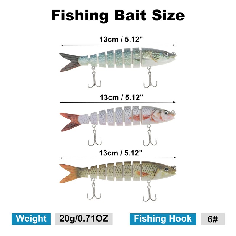 - Vibrant Colors: Featuring a vibrant color palette, the segment lifelike fishing lures stand out underwater, captivating the attention of fish in varying visibility conditions. The bright hues enhance the bait's visibility and effectiveness, making it an essential tool for anglers.