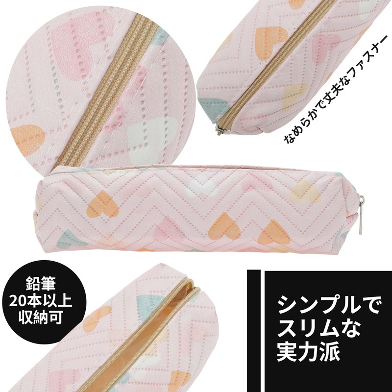 CAPASTEC Pencil Case, Pencil Case, Stationery, Slim, Simple, Large Capacity, Cute, Heart Pattern, Lightweight, Business, High School Students, 1 Piece, Pink