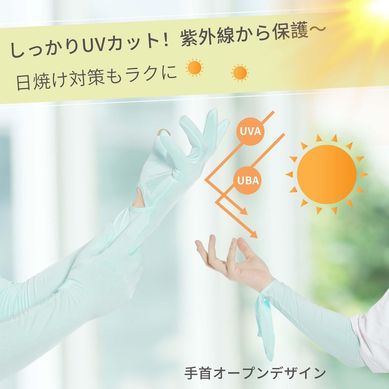 [CAPASTEC] アームカバー uvカット 冷感 アームスリーブ 手袋付き 日焼け防止 紫外線対策 スポーツ ランニング 運転用 自転車 男女兼用 ひんやり ミントグリーン