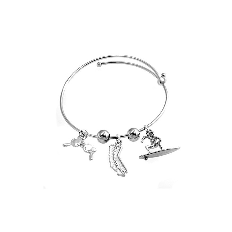 Cape Cod Jewelry-CCJ California Golden State Vacation Surfer Bangle Bracelet SilverTone