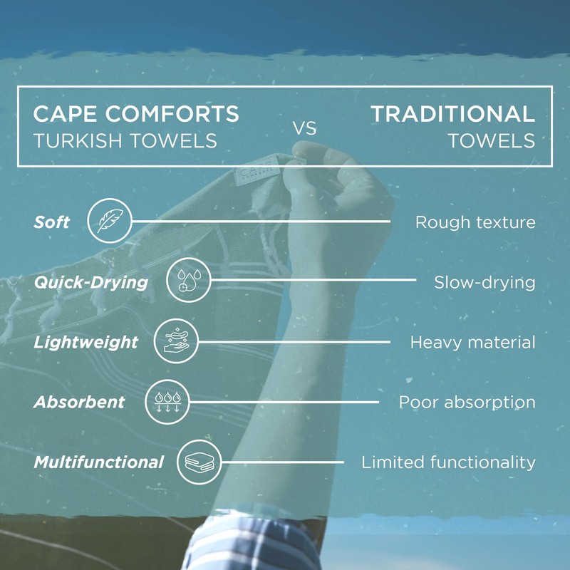 • Travel-Friendly: Compact and lightweight, Cape Comforts beach towels are easy to pack and carry. This makes them an ideal travel companion.