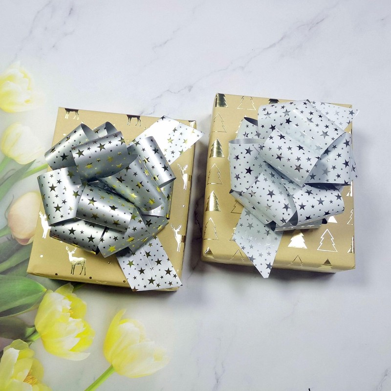 - Sparkling Flower-Shaped Bows for Gift Wrapping: These 6-inch bows feature stars pattern and a bloom-like 3D design, creating dazzling decorative effects on presents, Christmas trees, and party setups. Perfect for adding luxury to birthdays, weddings, and holidays.