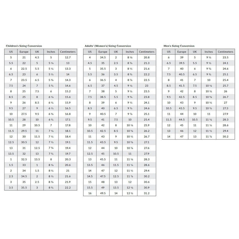 - Begin 1/2 size up from street shoe size, For high instep, choose wide width, Child size 2 is equivalent to Women size 4