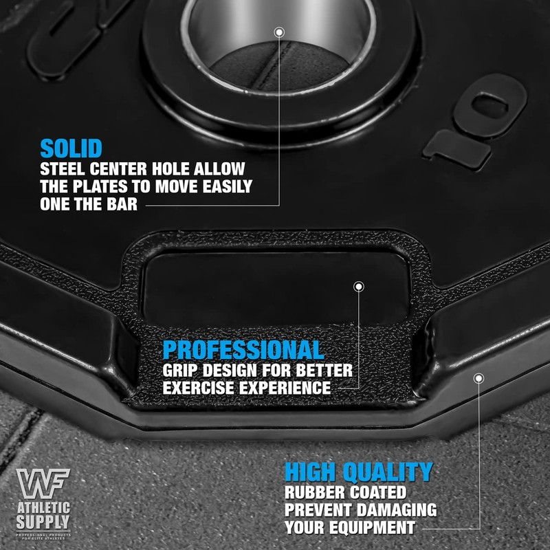 CAPHAUS 2-Inch Rubber Coated Grip Disc, 12-Sided Olympic Weight Plates for Strength Training; Precision Casting, Stainless Steel Insert, Rubber Coated & Ergonomic Grip