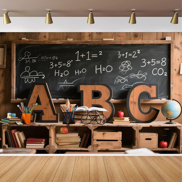 CapiSco Back to School Backdrop for Teacher Students Classroom Party Decorations, Black Classroom Chalkboard and ABC Letters Photo Photography Background, Graduation Prom ABC Decor Banner 7x5ft