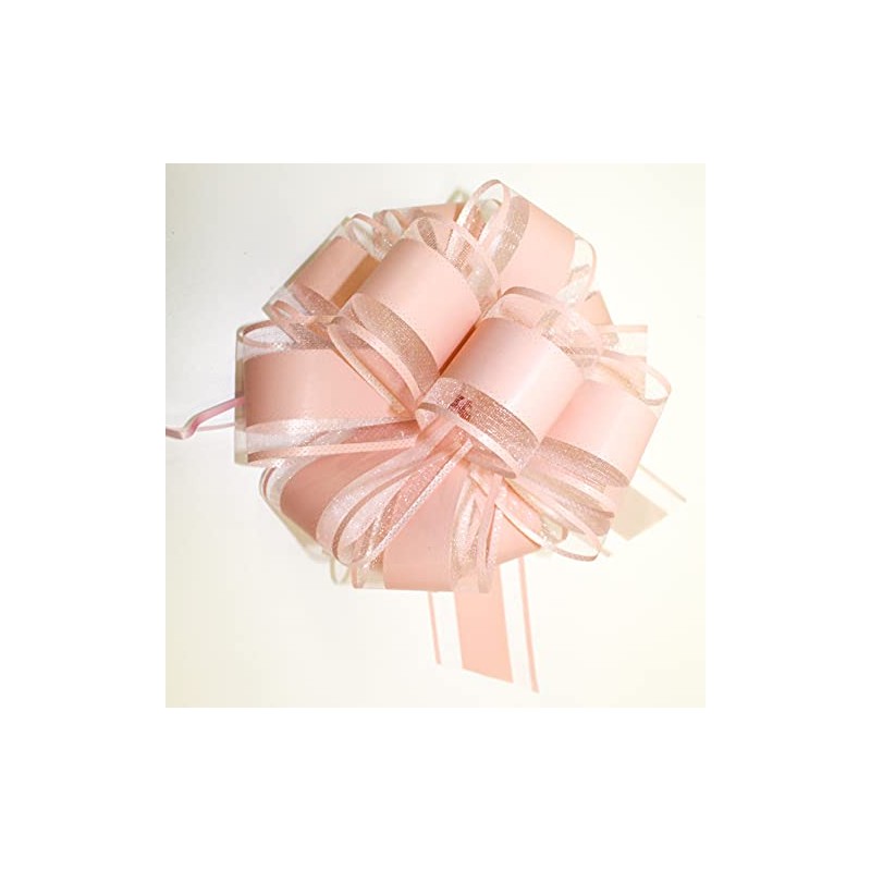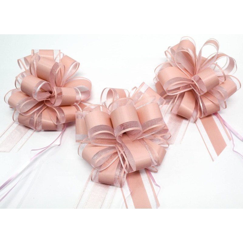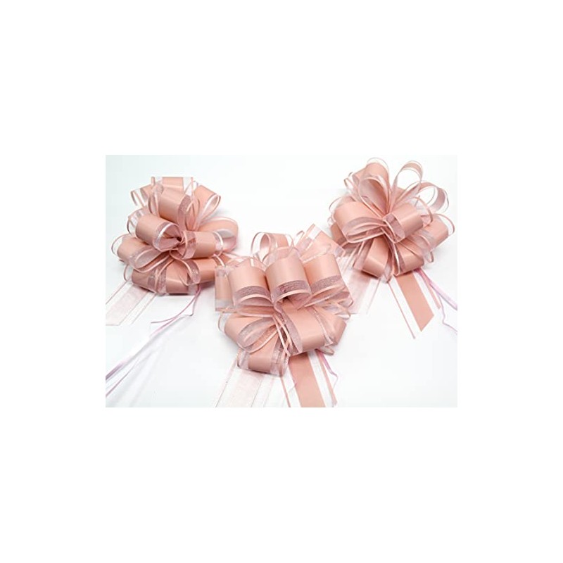 CaPiSo 18 cm Large Pull Bow Drawstring Poly Ribbon Decorative Bow Gift Bow for Gifts for Bags Sugar Bags Crafts Decorating (Dusky Pink, Pack of 3)