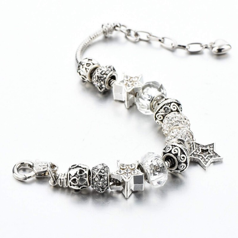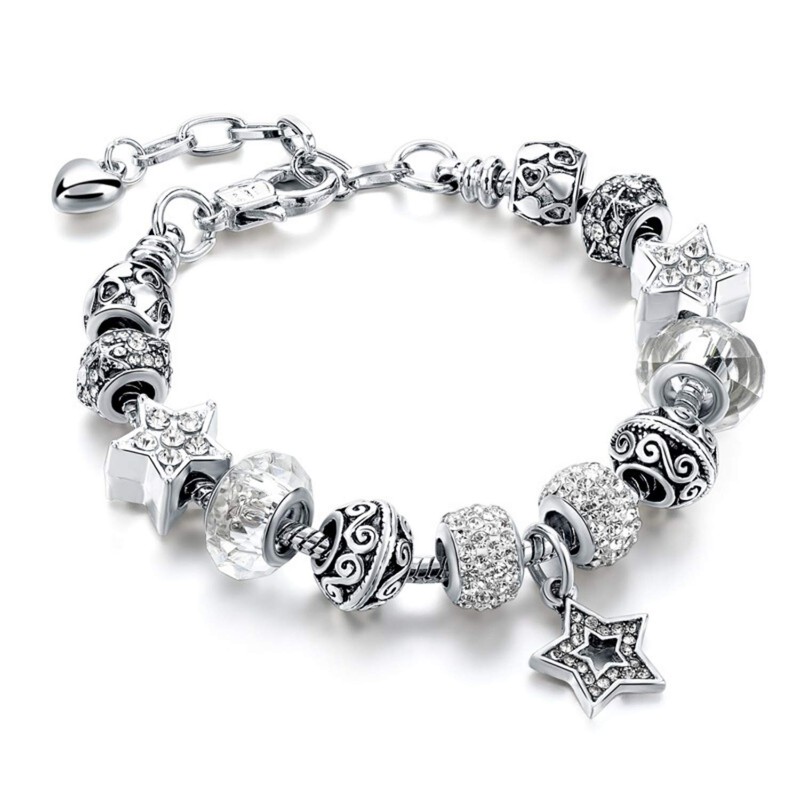 Capital Charms custom charm bracelets are high quality fashion bracelets that are designed for style and comfort. Charm bracelets arrive pre-arranged with DIY charms crystals and beads sets but are also customizable – allowing you to add, take away or re-arrange beads and charms for jewelry making. The charm bracelet set is also a compatible fit with Pandora style charm bracelets and beaded charms - you can customize and use other beads and charms with the snake chain bracelet and alternatively, you can use Capital Charms beads and charms on other branded snake chain bracelet. Each charm bracelet is built with an easy to use lobster clasp that make it effortless to wear. Capital Charms charm bracelets are a universal fit, making it an excellent gift for family, friends and loved ones. Shop between a wide variety of silver charm bracelet styles from purple theme, pink hearts charms, ocean blue, and silver star pink, sky blue, and blue stars bead charm bracelet theme collection.
