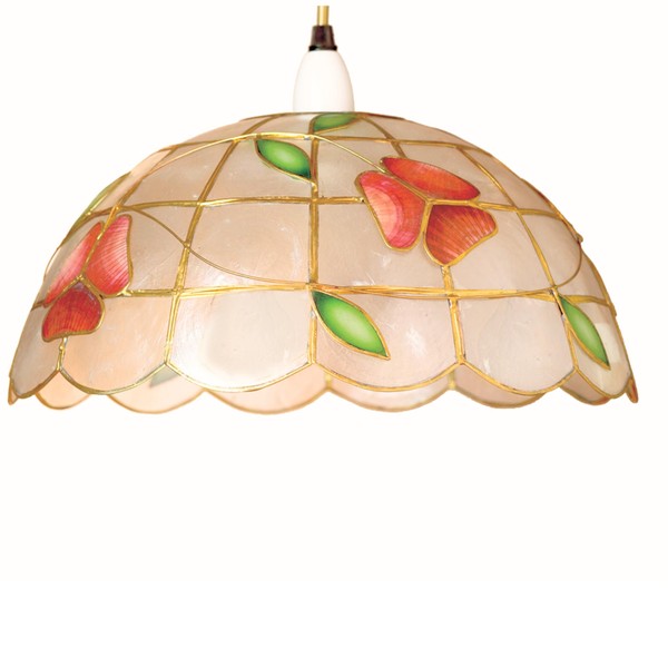 Capiz Shell Pendant Lampshade – Handcrafted Floral Ceiling Light Shade, 30cm, Vintage Style, Red and Green Design for Living Room, Bedroom, Dining Room