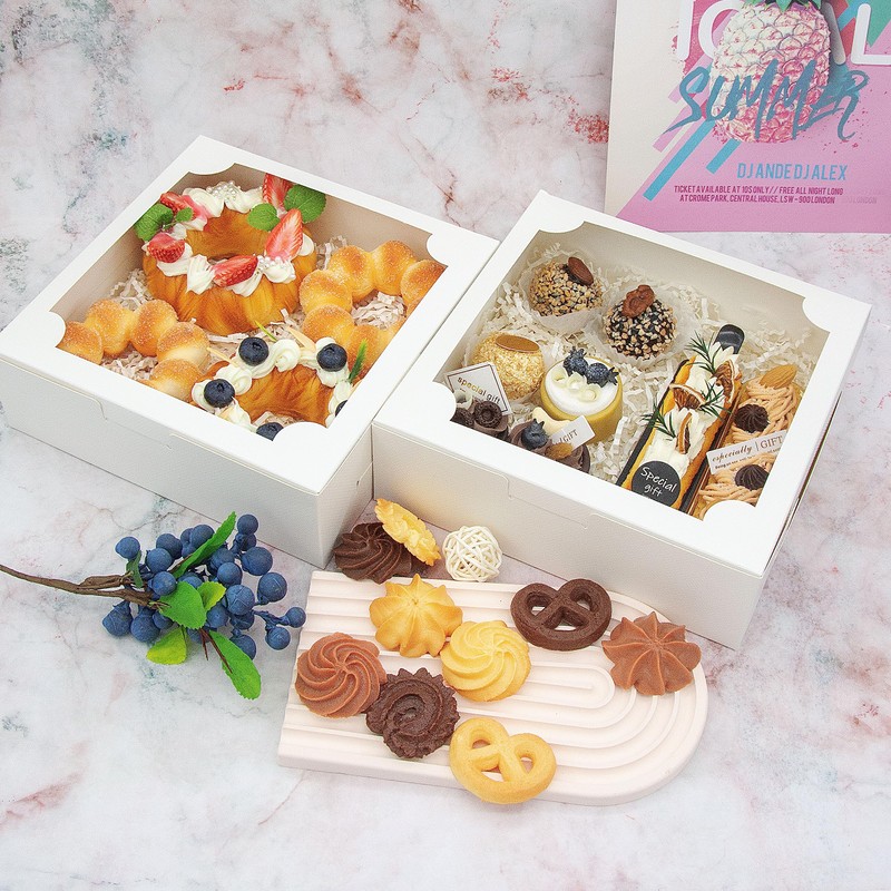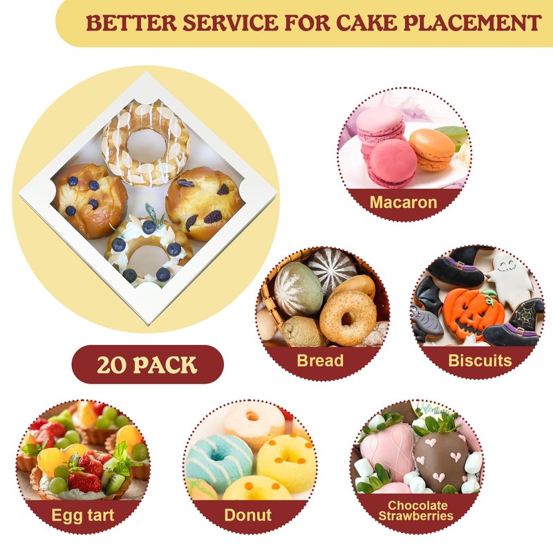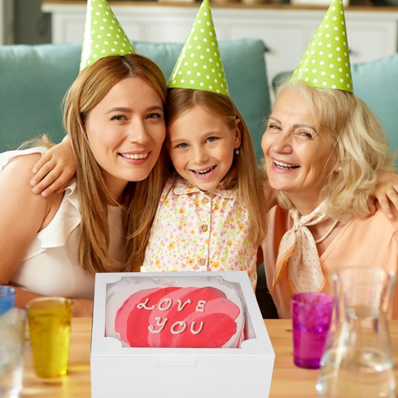 - Various Applications: These pastry boxes are great for cookies,candys, chocolate strawberries, pastries, muffns, donuts, pie,mini cake,cupcake, or any other baked goodsApplicable scenariosbirthday parties, holiday gatherings, weddings, anniversaries, Valentine's Day, family gatherings, graduation ceremonies etc