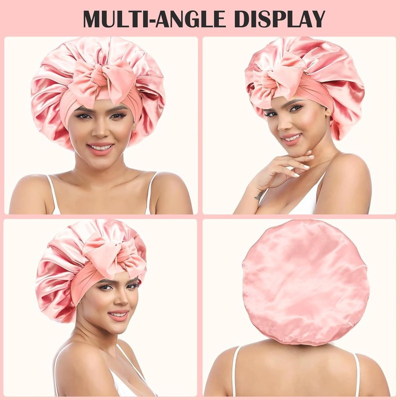 - 【Capó antideslizante】Banda ancha, elástica y suave, puedes ajustar y atar la banda tú mismo, resuelve perfectamente el problema de que el gorro se salga de tu cabeza mientras duermes. Nuestro gorro de satén para mujer es cómodo de llevar y tiene dos correas para ajustar el tamaño de la cabeza. Este gorro de satén viene con una corbata larga y ancha que puedes atar o envolver alrededor de tu cabeza para asegurar que la seda y la capucha estén firmes.