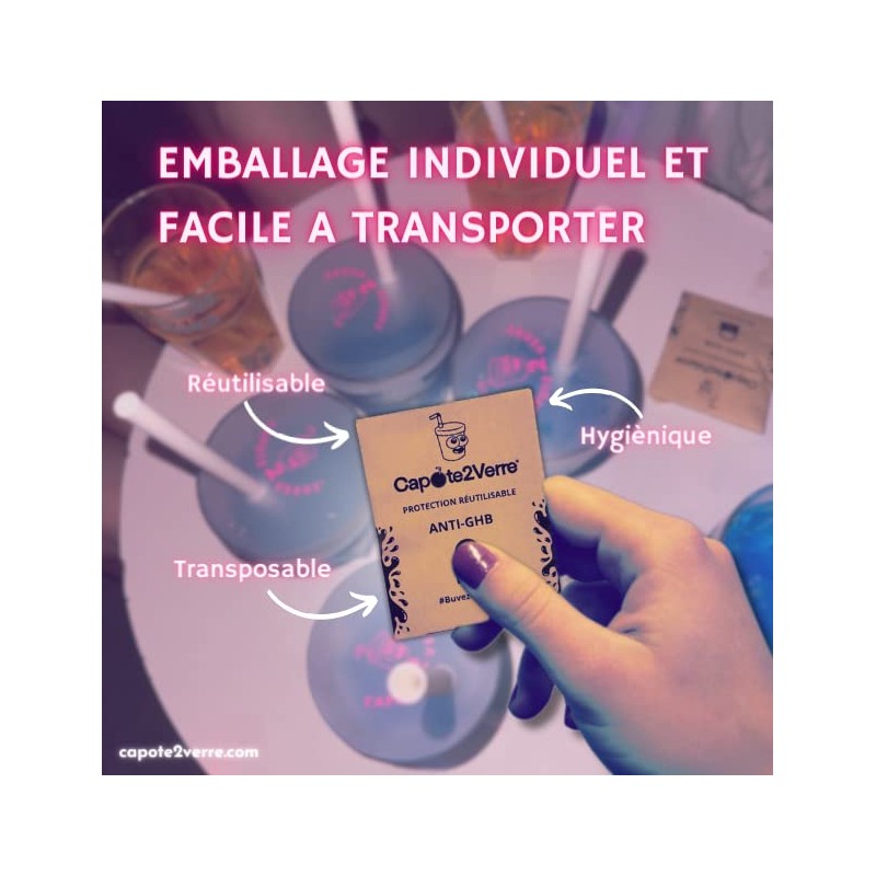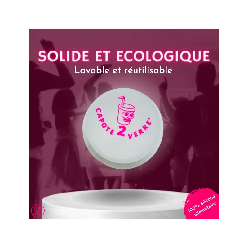 Hood with 2 glasses is a protection against drugs, burglary and spills: protect yourself and your drink with your hood 2 glass that serves you (again) for all your events: evening, bar, nightclub... The glass cap is made of 100% food grade silicone, your 2 glass covers are washable, reusable and environmentally friendly. The unique and extremely flexible format adapts to all your containers. Take your hood with 2 glasses