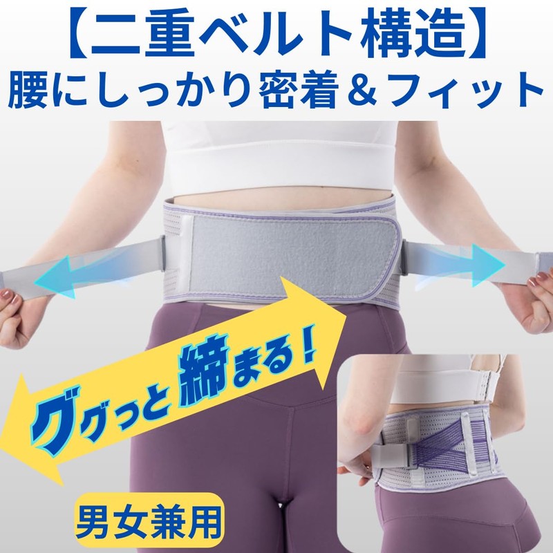 - (Double compression belt firmly secures your lower back) Distributes the burden. Supports all kinds of movement during exercise and daily life, maintain proper posture