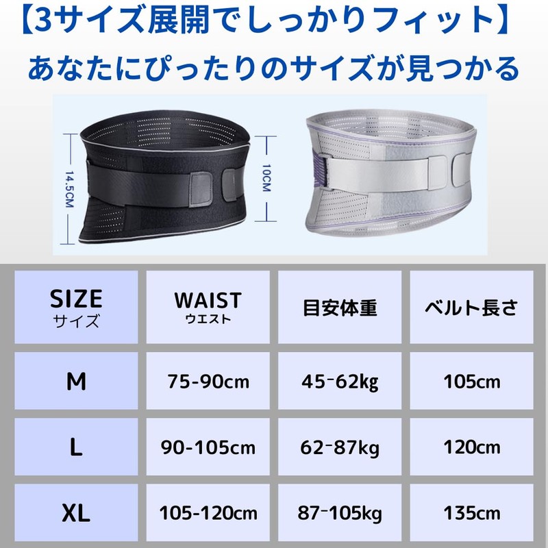 The wide belt and auxiliary band have dual compression construction to hold your lower back. 4 flexible soft posts fit along your waist and disperse pressure on your lumbar spine to relieve burden. Not only during exercise, but also for long standing work or desk work.