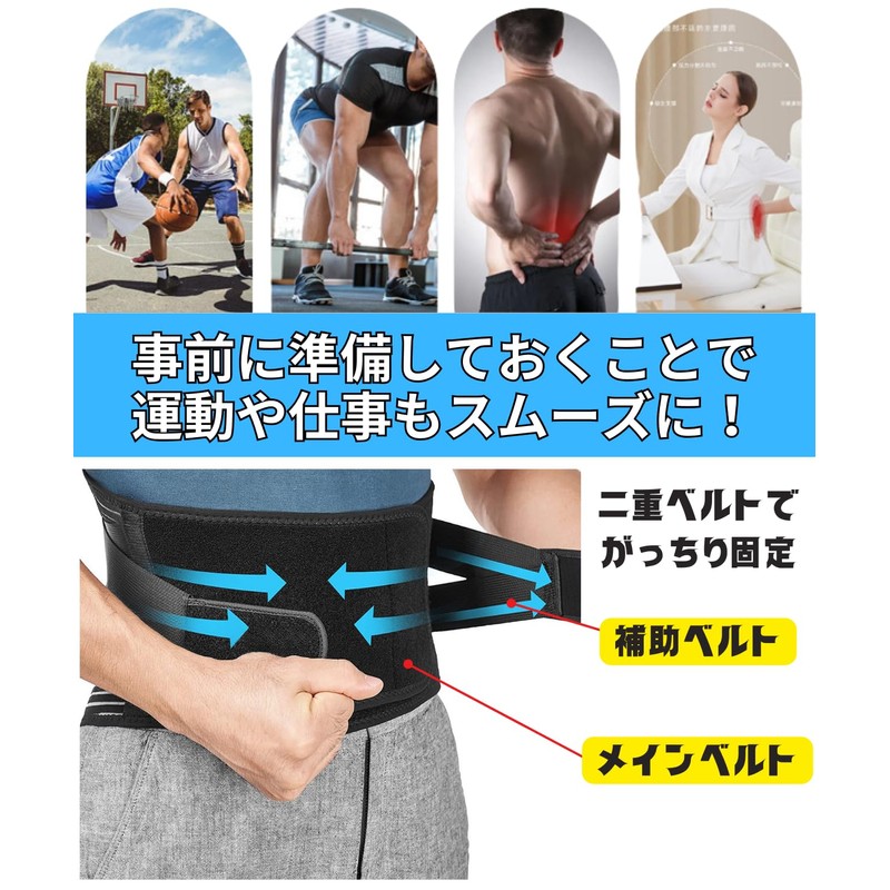 - 【左右からのダブル締めつけ機能】自分の体型や好みのサポート強度に簡単調整が可能。腹部から腰部までを均一に包み込む設計で、局所的な違和感なく装着できます。軽量で薄型デザインなので服の下にも目立ちにくく、立ち仕事、デスクワーク、運転、力仕事など、あらゆるシーンで腰の負担を効果的に軽減します
