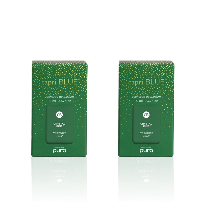 Capri Blue Crystal Pine Pura Smart Fragrance Diffuser Refills (Pack of 2): Whether you're enjoying a long weekend at the cabin or glamping with your girlfriends, Crystal Pine Pura smart diffuser refills are the perfect forest fragrance. Pura oil diffuser refills are intended for single use. Simply insert the Pura refills into your app-based Pura fragrance device for the smartest way to aromatize your house (Pura smart device sold separately). --- App Functions: No matter your location, you may set your scent schedule, swap between fragrances, and adjust their intensity on the cordless diffuser. Capri Blue Crystal Pine diffuser refill vials will fill your home with notes of frosted fir, snowy woods, pine, and sage. These Pura home fragrance refills also make perfect housewarming gifts. --- Details: Created with no harsh chemicals, these home diffuser fragrances are completely safe for pets and kids. These Pura home air fresheners are free of parabens, phthalates, dichlorobenzene, mineral oil, DEA, petroleum, formaldehyde, or propylene. --- About Us: Capri Blue is an intersection where fashion meets fragrance. We pull inspiration from contemporary fashion trends to curate new offerings for every season. Find your Capri Blue style and shop your favorite Pura diffuser scents today!