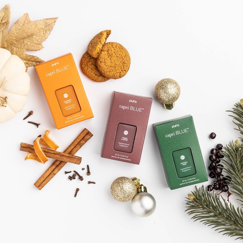 • CB + Pura Oil Diffuser Refills (Pack of 2): Capri Blue Crystal Pine is now available in Pura Refills! The Pura app allows you to control your smart plug diffuser from anywhere, plus you can set custom schedules and choose your fragrance level to always keep your house smelling fresh. So, bring on those unexpected guests and create the ultimate fragrance experience with your Pura Crystal Pine Capri Blue Refills! (Pura diffuser plug in sold separately.)