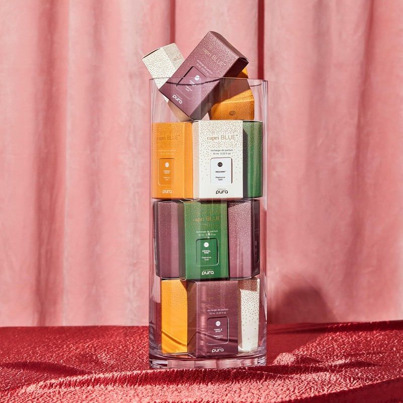 • About Us: Inspired by contemporary fashion trends, Capri Blue creates exciting new products for every season. The following Capri Blue fragrances are available for your Pura smart home fragrance diffuser: Volcano, Aloha Orchid, Blue Jean, Coconut Santal, Havana Vanilla, Paris, Pineapple Flower, and more!
