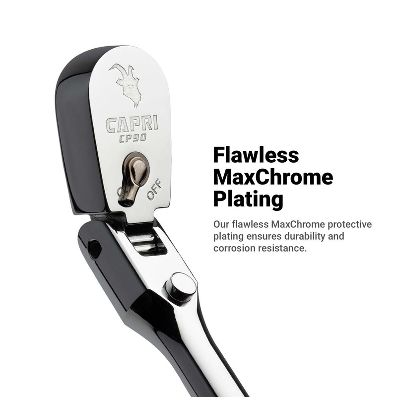 • 180-degree flex-head makes it easy to navigate odd angles and tight corners. Low profile ratchet head lets you work in tight spots with low clearance. Extra long handle provides extended reach and leverage. Anti-dust design seals out dusts and debris, protects the gear, and maintains internal lubrication for sustained high performance over time