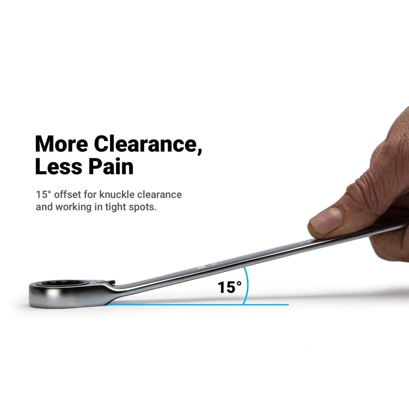 - Industry-leading reversible ratcheting combination wrench with 120-tooth ratchet mechanism, delivering silky-smooth operation with a minimal 3-degree swing arc, perfect for tight spaces; Reversible gear with a simple thumb switch