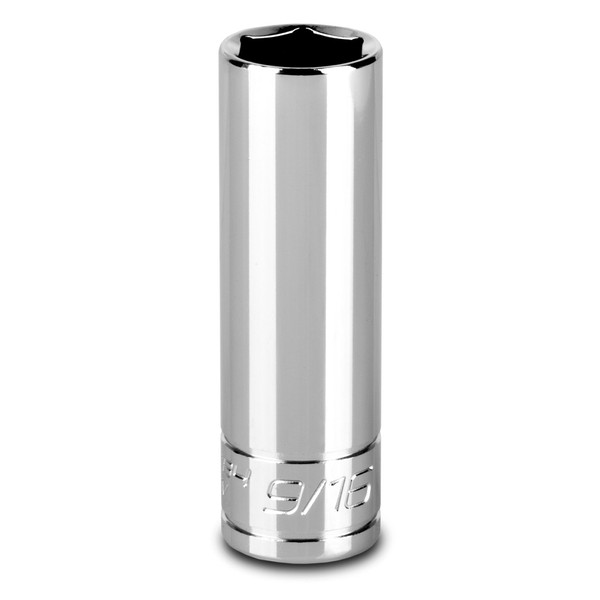 Capri Tools high performance sockets are trusted by professionals for even the most demanding applications. We use premium Chrome Vanadium steel tempered with our proprietary heat treatment process to make these sockets and accessories. They are durable and withstand more torque. Each socket underwent careful polishing and protective plating process to achieve our own MaxChrome finish. The 6-point WaveDrive design grips fasteners more tightly than traditional design, preventing fastener rounding and giving you more leverage. Single 3/8 in. drive, 9/16 in. size deep socket.
