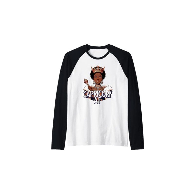 Capricorn AF Vibes Queen Energy Zodiac Crown Afro Regal Raglan Baseball Tee
