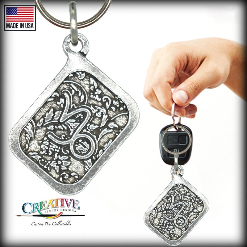 Capricorn Keychain, Zodiac, Horoscope, Pewter, L089KC, 1 1/4”, 100% Handmade in the USA, Star Sign Keychain, Key Chain, Key Ring, Key Fob, Astrology, Birth Month, Gift, 20+ Zodiac Designs Availible