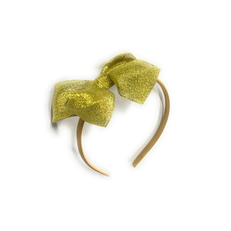 Caprilite Girls' Classic Grosgrain Ribbon Large Bow Headband (Sparkly Gold, One Size)