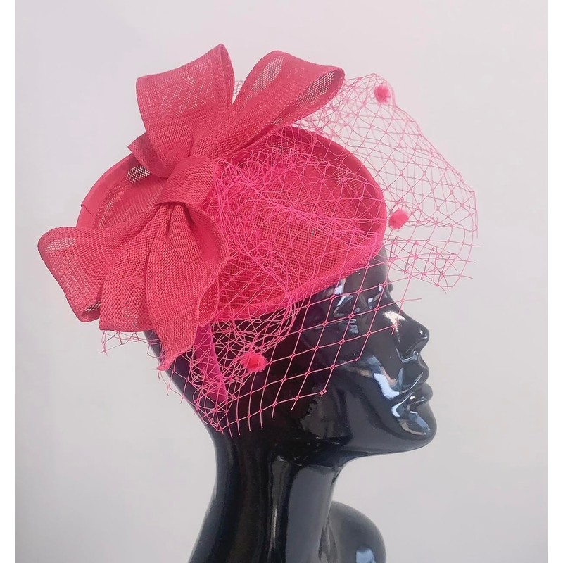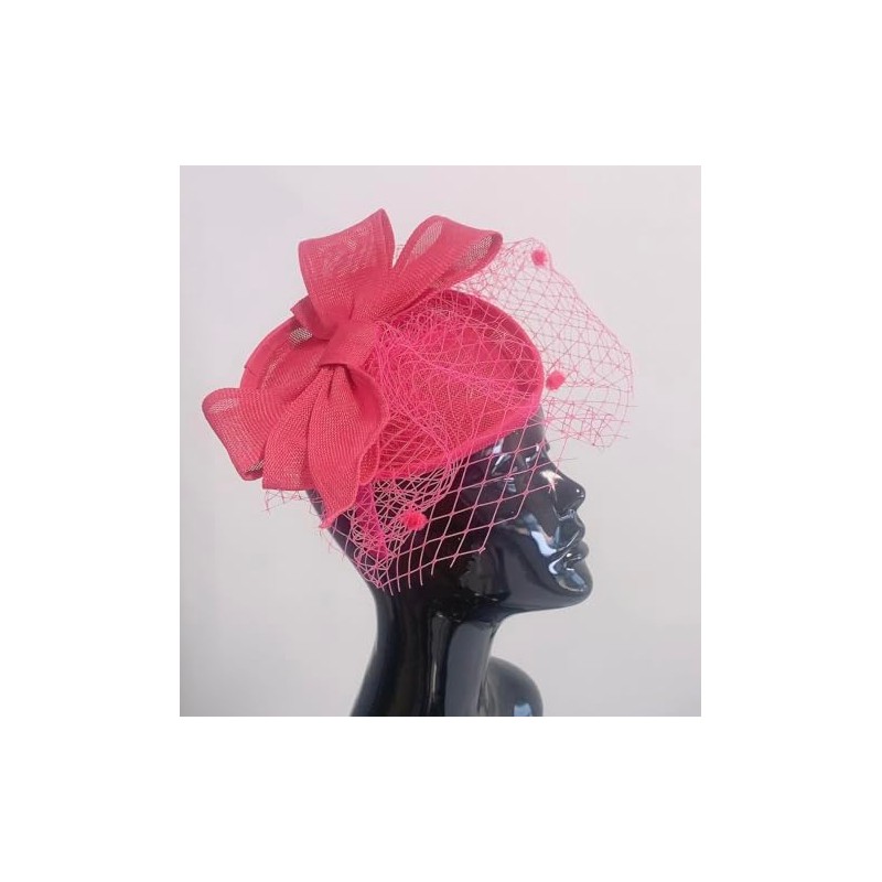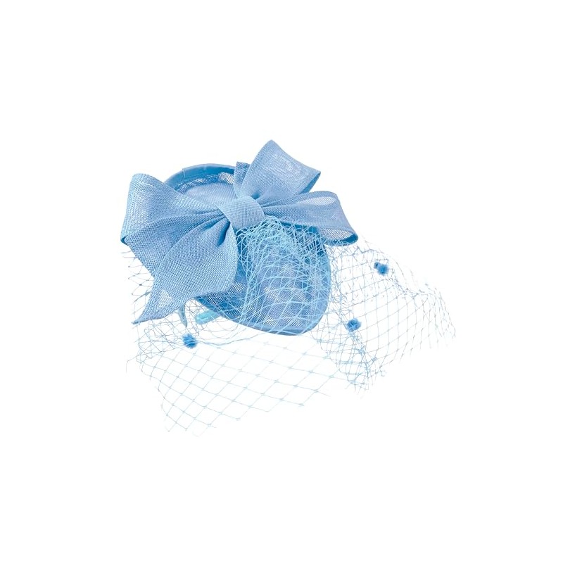 Caprilite Teardrop Pointed Pillbase Large Bow Fascinator with Birdcage Veil on Headband UK (Baby Blue Pastel Blue)