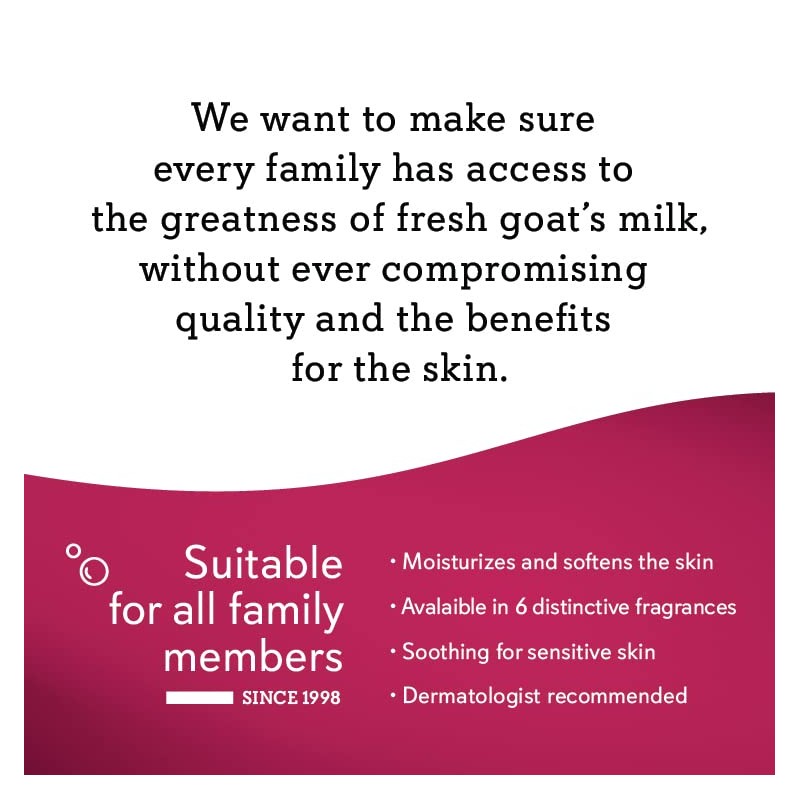 Made using fresh goat’s milk that we collect from local goat farmers. Our soap is made by traditional saponification and cleanses your skin without drying or altering its natural hydration barrier. Our original recipe has delicately perfumed local families since 1998. The cream present in goat’s milk is a moisturizer for soothing dry and damaged skin. Full of essential nutrients and vitamins A, B2, B3, B6, B12, and E, that feed the skin and are absorbed into the body. Proteins are easily absorbed by the skin, contributing to a deep and extended hydration.
