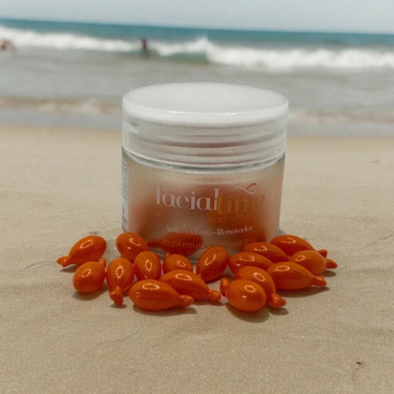 Cápsulas faciales con vitamina C, uso cosmético iluminador, todo tipo de piel