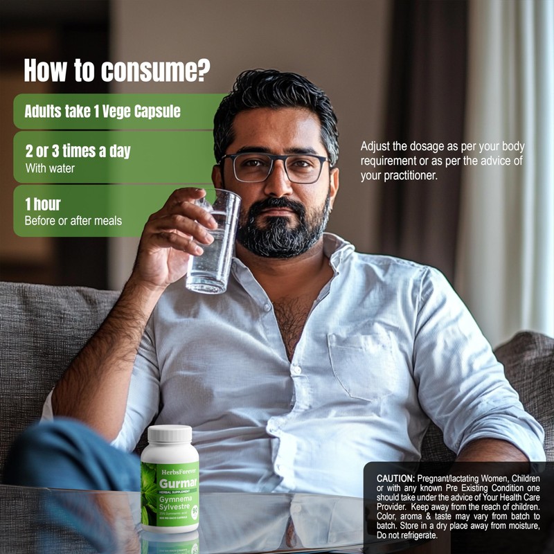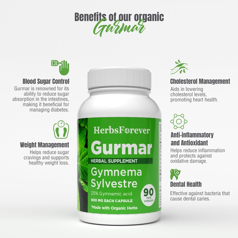 Herbsforever Gurmar Capsules | Gymnema Sylvestre Extract 7:1 | 90 Vegan Capsules | Ayurvedic Herbal Supplement | Supports Healthy Sugar Metabolism & Wellness