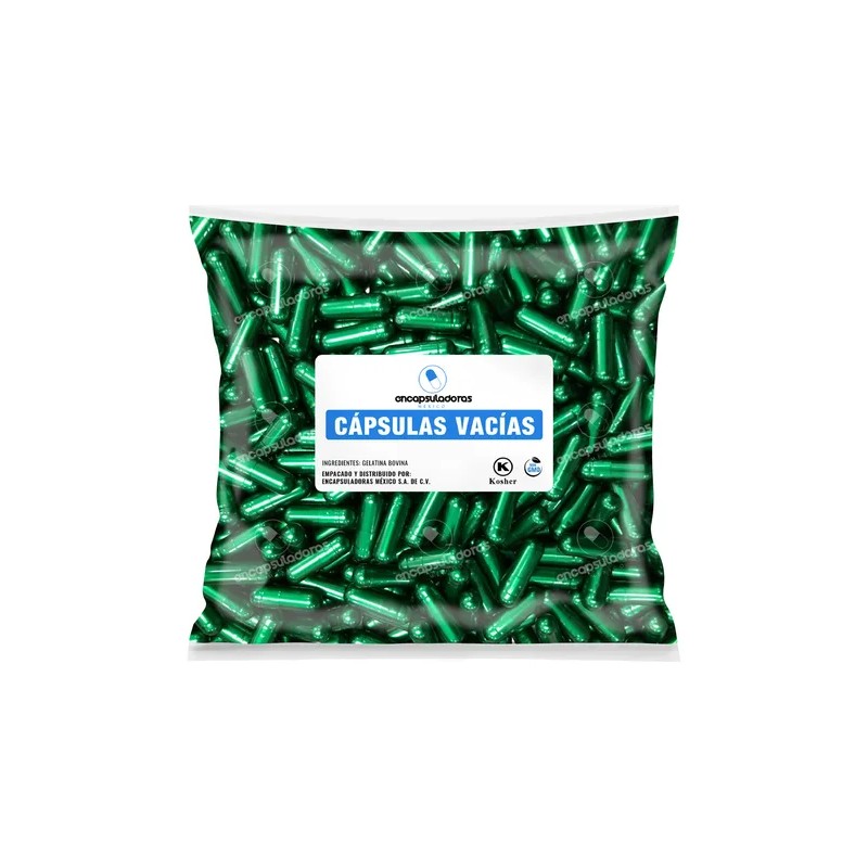 💊 1,000 Cápsulas Vacías Verde Metálico/Verde Metálico – Tamaño #0