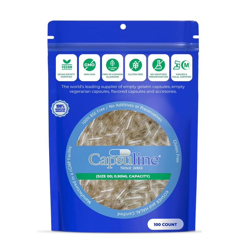 Capsuline Size 00 - Clear Empty Vegan Pullulan Capsules - 100 Count - Empty Pullulan Pill Capsules - DIY Vegan Capsule Filling - Empty Caps - Gluten Free, Non-GMO
