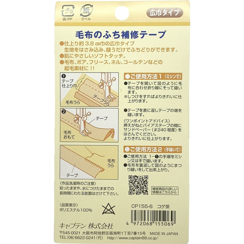 CAPTAIN88 キャプテン 毛布 の ふち 補修 テープ 3.8cm巾×長さ2m #6 コゲ茶 CP155