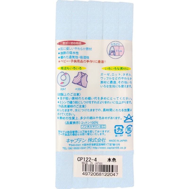 - Bias tape made of soft gauze material that is non-formaline and gentle on the skin, perfect for babies and children. Moisture wicking and breathable