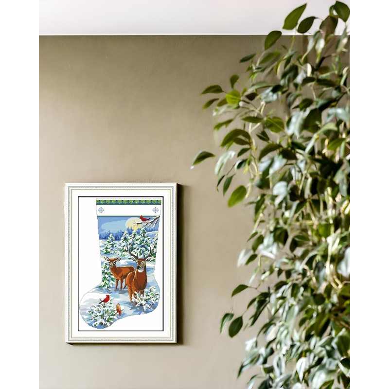 CaptainCrafts Cross Stitch Kits Counted Cross Stitch Christmas Stocking Unprinted 14CT Fabric DIY Art DMC Cross Stitch Embroidery Kits for Adults (Counted 14CT, Elk Deer Christmas Stocking)