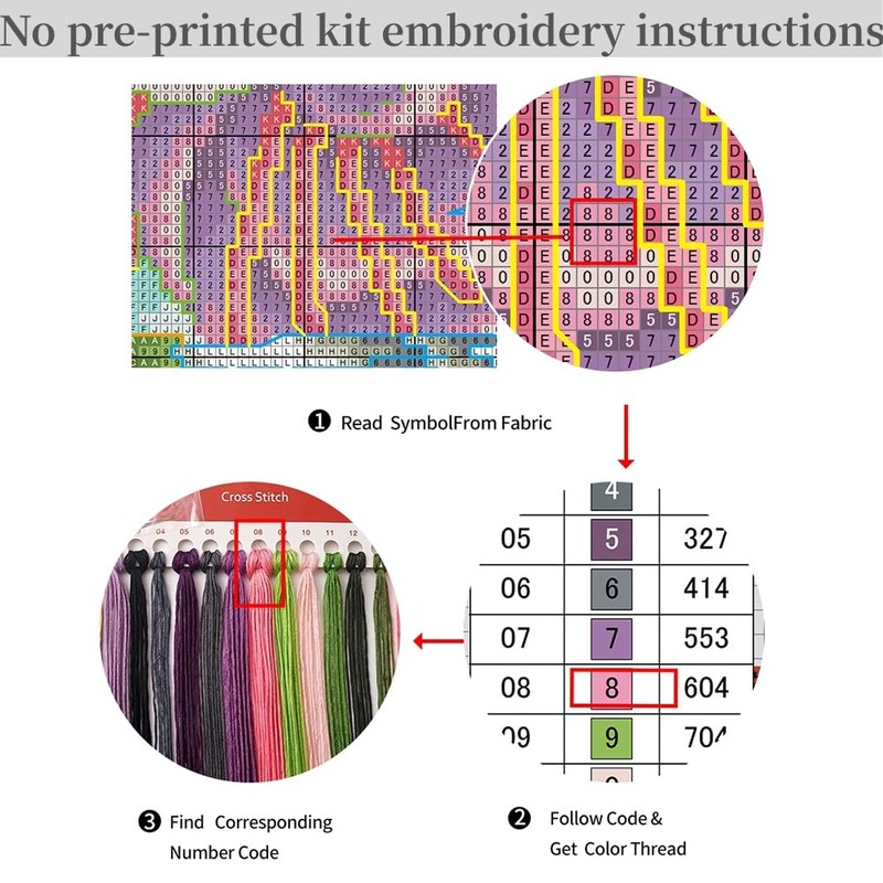 - White Fabric Cross Stitch: "Counted kits" is non-printed canvas. Traditional Cross Stitch Kit, NO patterns pre-printed on the fabric. If a beginner chooses a kit without preprints, don't worry, the difficulty will not be great. The kit has a complete English illustration, can refer to the instructions and drawings to make it. You can try to challenge and enjoy this version of the kit, it will be more fulfilling!