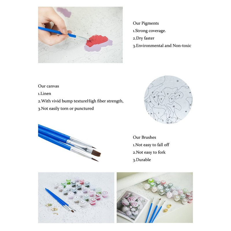 - Relaxing Pastime: Unwind with a stress-free creative activity working on your paint by numbers painting at your own pace.