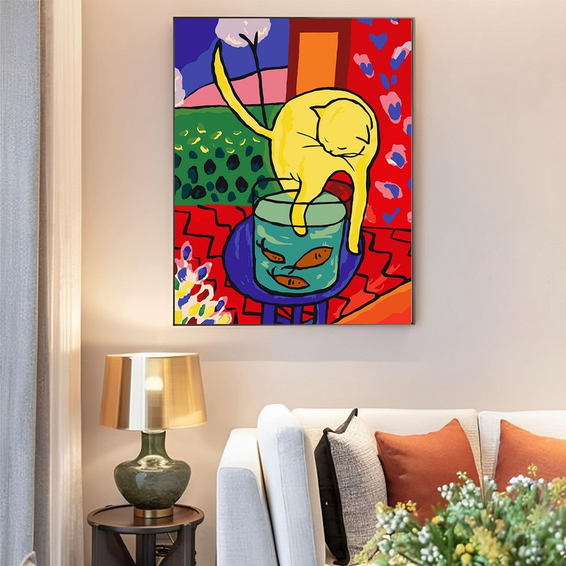 CaptainCrafts Paint by Numbers, Painting by Number for Adult Have Paintbrushes Acrylic Pigment 16x20 Inch House Art Deco Crafts (Frameless, Art Painted Naughty cat Playing with Fish)