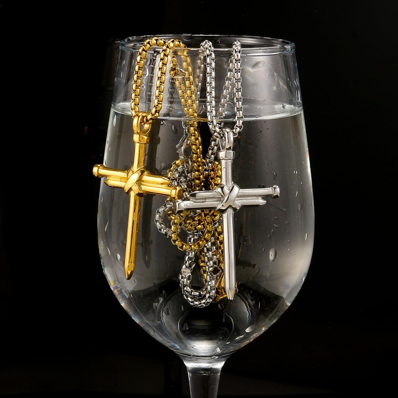 CaptainSteeL Cross Necklace for Men and Women-Gold/Silver Stainless Steel Nail Cross Pendant Necklace for with 18-24inchs Chain,Gifts with Flannel Bag