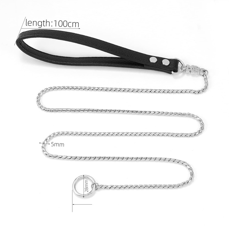 CaptainSteeL Stainless Steel Dog Leash, 3ft, 4ft, Integrated Dog Collar and Leash, 5mm 1m/1.2m Metal Dog Leash for Small and Large Pets, with Leather Handle