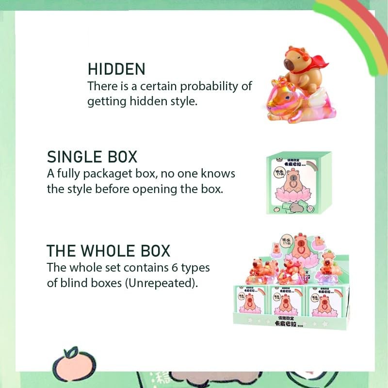 - COLLECTIBLE STYLE: Blind box collection featuring adorable capybaras with various themes including swimming, turtle-riding, and relaxation poses