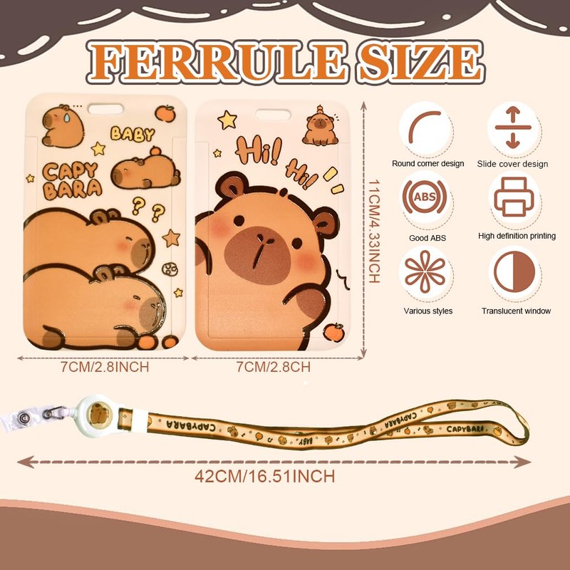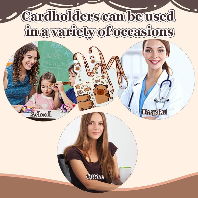 Capybara ID Card Holder with Strap, Capybara Card Holder ID with Lanyard Extendable, Retractable Badge Reel, Removable Name Plate Clips, Neck Lanyard Strap, Teacher Office Gifts, Pack of 2
