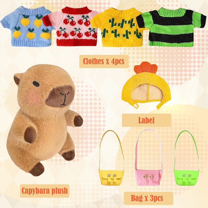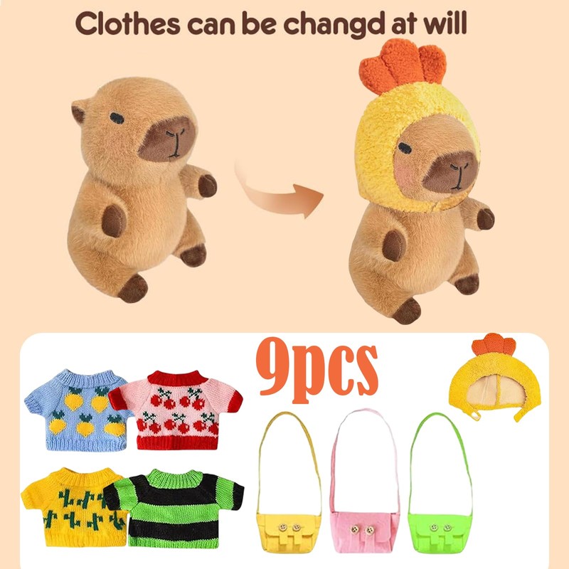 - Capybara Plush, 9 Piece Set with Clothes and Accessories, Includes 1 Capybara, 1 Hat, 4 Outfits, and 3 Bags Cuddly Toy for Boys and Girls, Valentine's Day and Birthday Gift