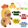 Capybara Plush, 9 Piece Set with Clothes and Accessories, Includes 1 Capybara, 1 Hat, 4 Outfits, and 3 Bags Cuddly Toy for Boys and Girls, Valentine's Day and Birthday Gift