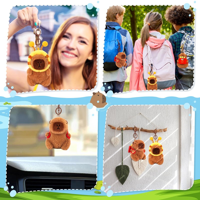 • 【Multi Functional Capybara Plush Toy】Each plush keychain capybara can not only be a cute decor for keys, but also as a charming decoration for luggage, handbag, schoolbags, wallets, backpacks, room decorations, or other personal items. Use this capybara plush toy as a backpack pendant or car ornament to add a touch of imagination to your life.