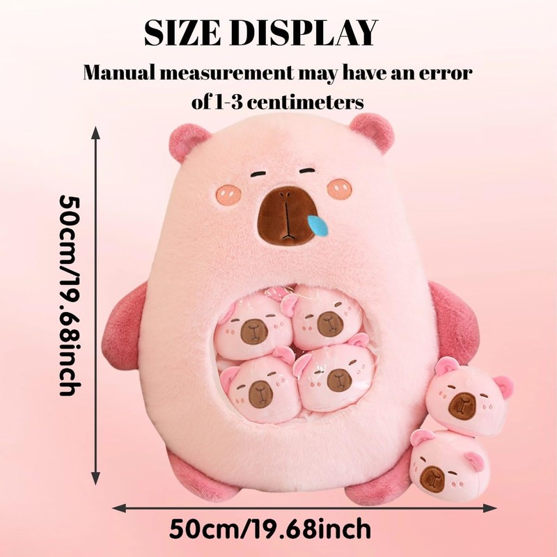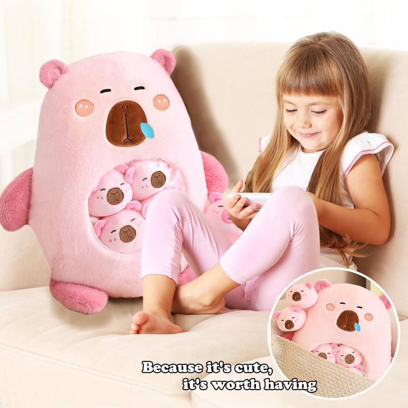Capybara Stuffed Animal Kawaii Capybara Plush with 6 Cute Babies Bag of Capybara Plushies Pillow Stuffed Toys for Girls Boys Gifts,Pink