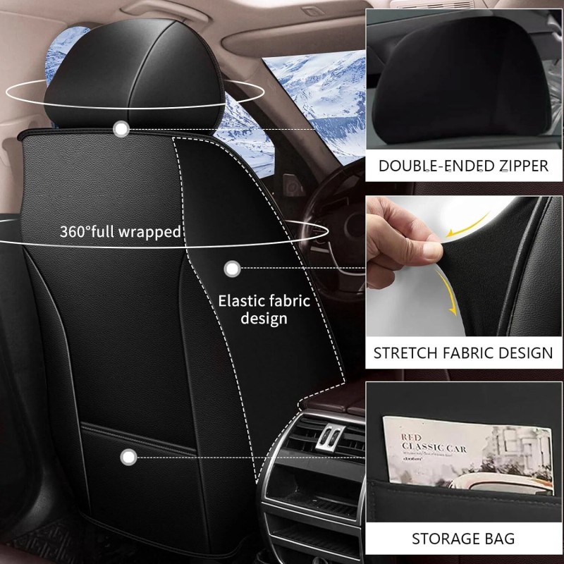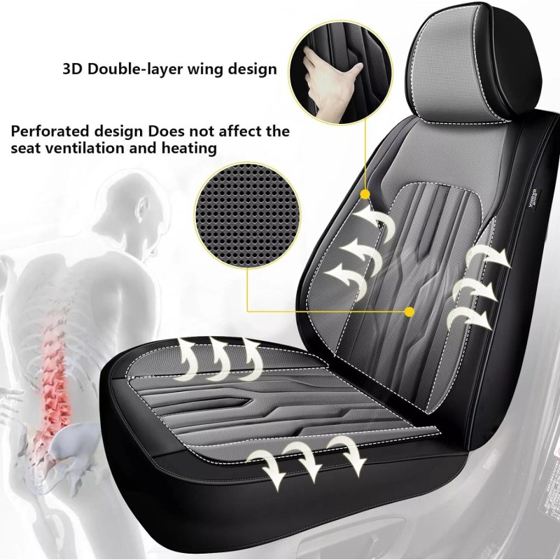 Car 2-Seat Cover Front Row PU Leather Cushion For Jeep Grand Cherokee 2014-2023