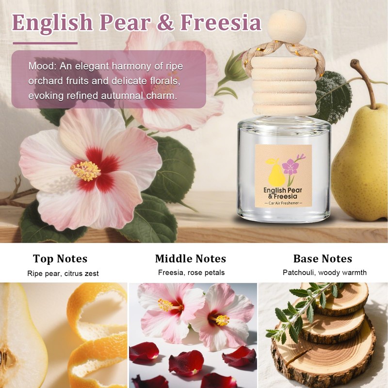 Car Air Freshener Oil Diffuser - Hanging Long Lasting Scent for Car & Home (BlackBerry & Bay, White Musk & Cedarwood, English Pear & Freesia, Wild Bluebell)