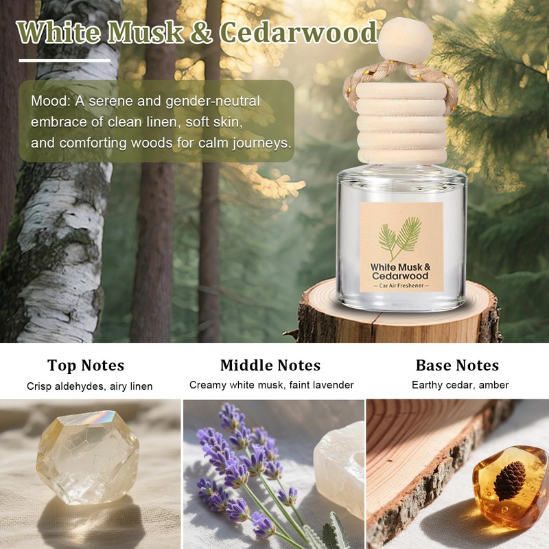 - 【Scent Notes – Premium Fragrance for Every Preference】:Natural Teakwood Mahogany – Rich, warm, and masculine with cedar and oak undertones.Black Ice – A bold, crisp blend of icy mint and amber for a refreshing kick. Bamboo Rain – Clean, green, and aquatic—like a forest after rainfall. White Tea – Soft, floral, and subtly sweet for a calming drive.